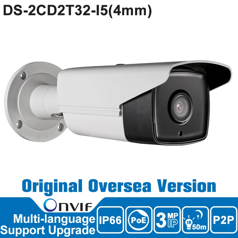 Best Seller Product Description : DS-2CD2T32-I5 Onvif Hik IP Camera 3MP POE Outdoor P2P Security CCTV Camera Oversea Version Night Vision H.264/MJPEG IP66