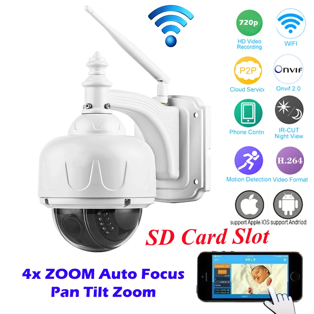 Best Seller Product Description : Full HD 1080P 960P Wireless WiFi IP Camera PTZ 2.8-12mm 4XZoom Auto-focus IR-CUT H.264 Onvif Security CCTV Camera SD Card Slot