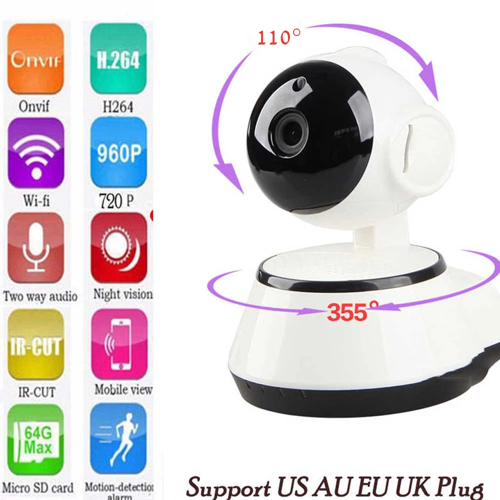 Product Details : 720P HD Wireless IP Camera Eyeball IR-Cut Night Vision Network Onvif Pan/Tilt P2P Baby Monitor Wifi Small CCTV Security Camera
