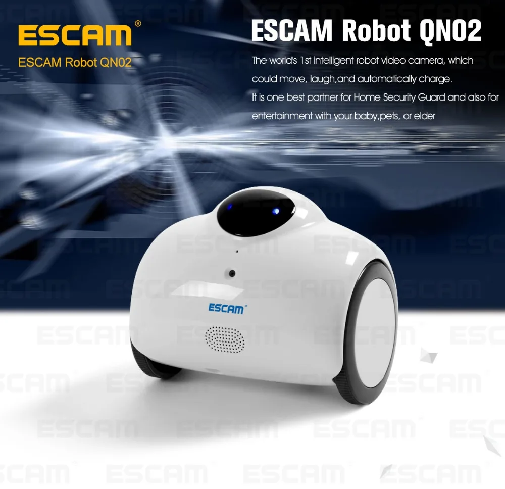 Product Details : Escam Robot QN02 Wifi Mini Household IP Camera 1MP HD 720P P2P indoor Surveillance Night Vision Security CCTV Camera auto charge